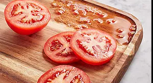 With an angled surface to allow liquids to drain away. Ideal for prepping juice filled items such as tomatoes.