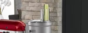 Get processing with your KitchenAid Stand Mixer. The Food Processor Attachment simply attaches to the hub of your stand mixer to slice, shred and julienne your favorite fruits, vegetables and hard cheeses. The exclusive ExactSlice™ System allows you to slice from thick to thin with one slide of the lever.