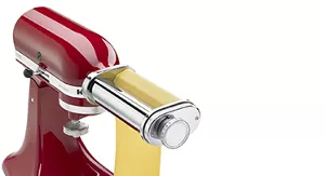 Bring the taste of fresh pasta into your home with this Pasta Roller and Cutter Set, that attaches directly to your KitchenAid Stand Mixer. The Pasta Roller helps you guide sheets of fresh homemade dough through and get the desired thickness. You can then cut the pasta sheets into thick pappardelle noodles or squares for ravioli or run the sheets through the fettuccine or spaghetticutter for perfectly uniform pasta.