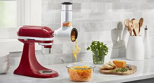 Connect the Fresh Prep Attachment to any household KitchenAid® Stand Mixer* power hub and use the power of the motor to run the attachment. *sold separately.